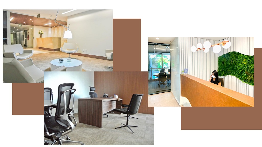 A BR.Offices dispõe de vários escritórios prontos, de vários tamanhos, totalmente mobiliados e com serviços de TI, secretariado, copa, limpeza, entre outros.